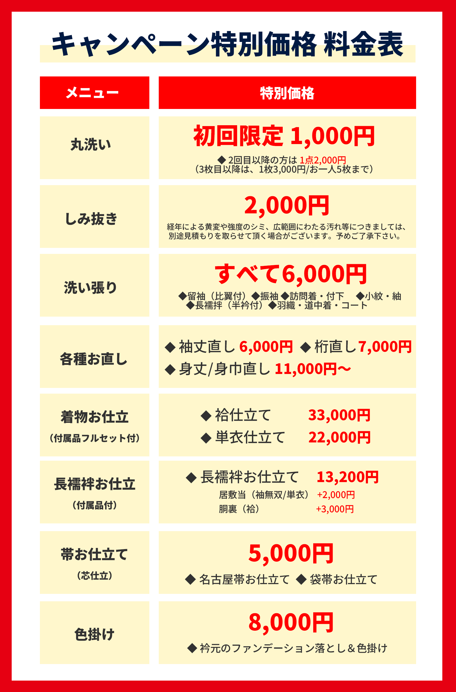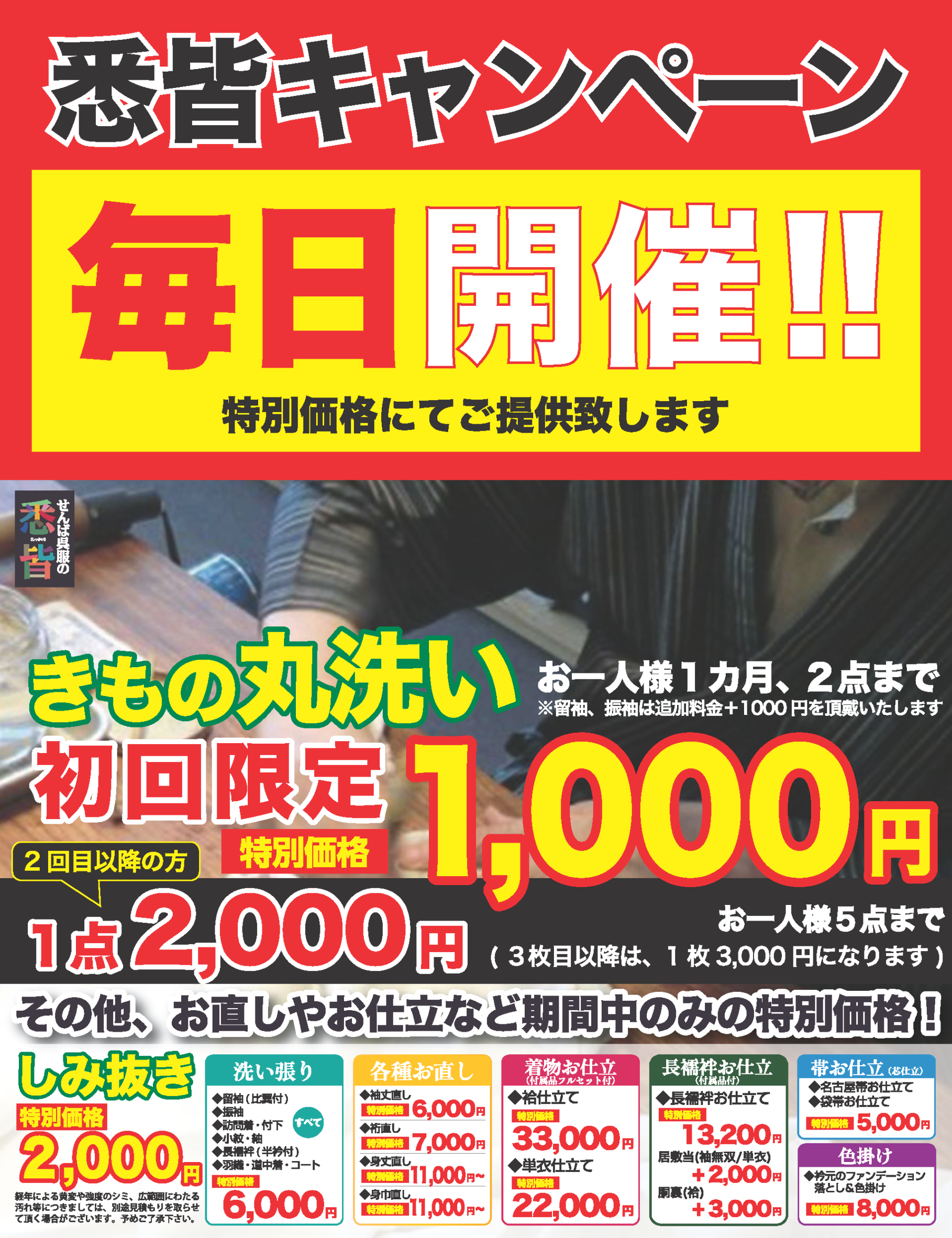 せんば呉服の「悉皆キャンペーン」毎日開催中!